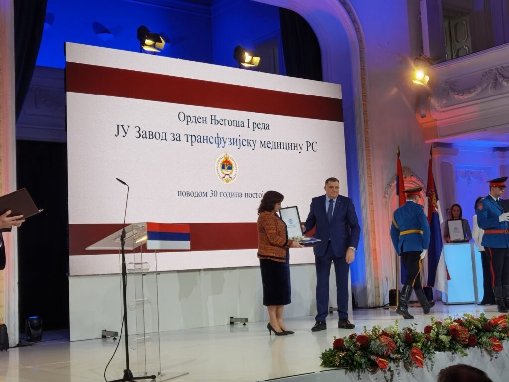 У оквиру обиљежавања Дана Републике, 9. јануара 2023. године , ЈЗУ Завод за трансфузијску медицину предсједник Милорад Додик одликовао је Орденом Његоша И реда, поводом 30 година постојања.