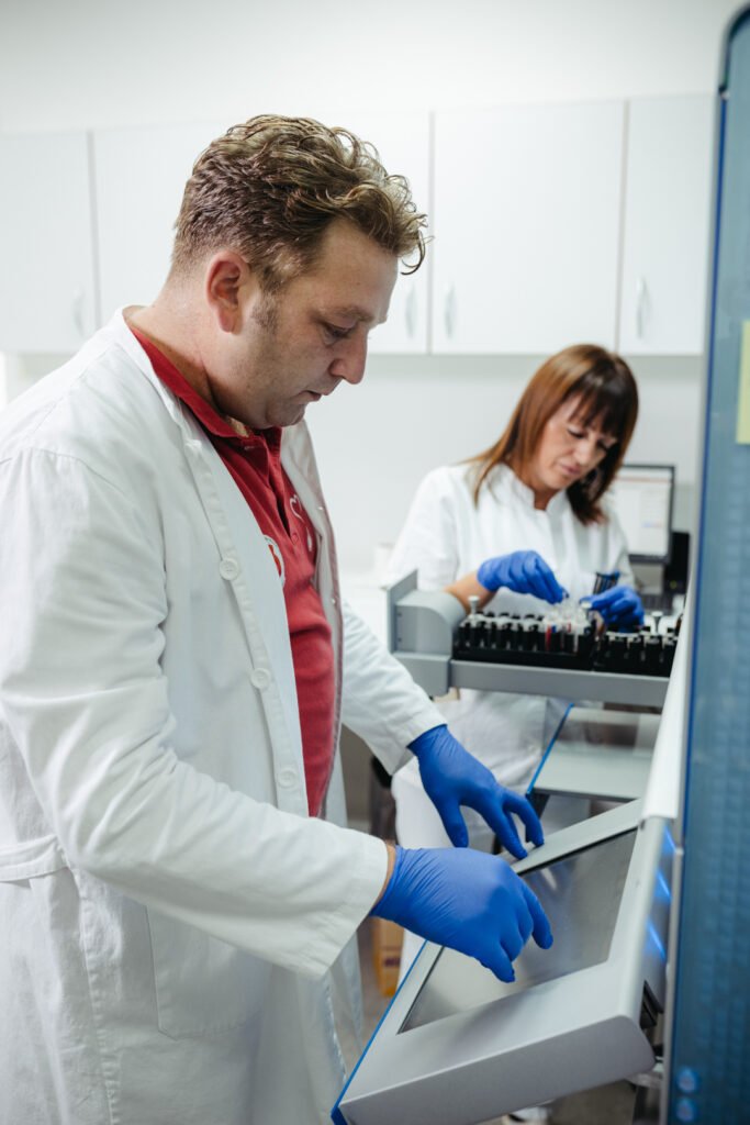 • типизација доза крви на антигене Rh система и антигене других крвногрупних система (K, k, Kpᵃ, Fyᵃ, Fyᵇ, Jkᵃ, Jkᵇ, Leᵃ, Leᵇ, P1, M, N, S, s, Luᵃ, Luᵇ)